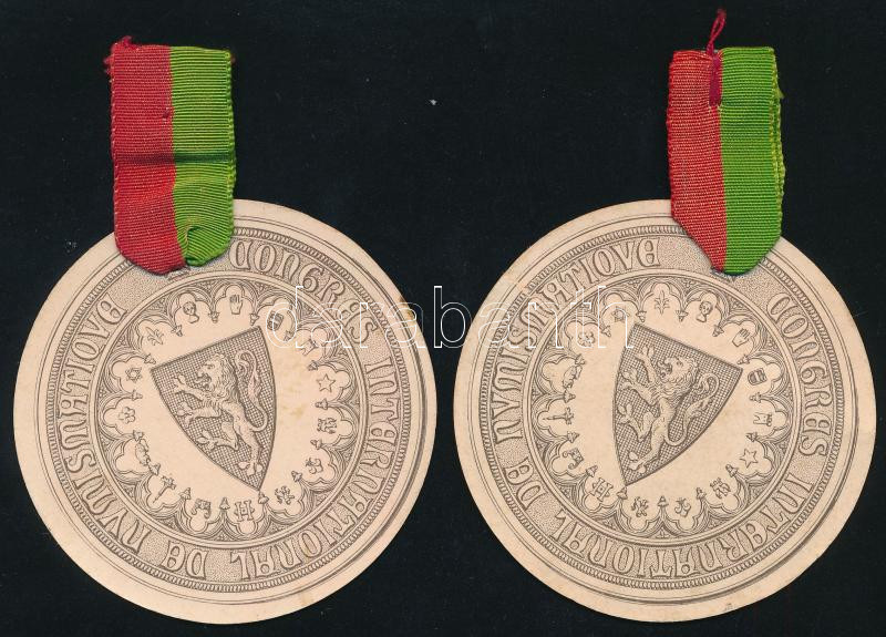 Leírás: cca 1910 Numizmatikai Kongresszus 2 db emblémája, aláírással.