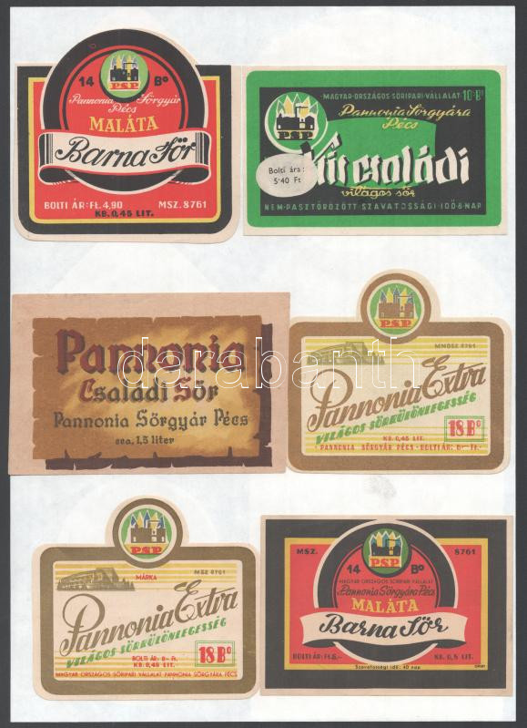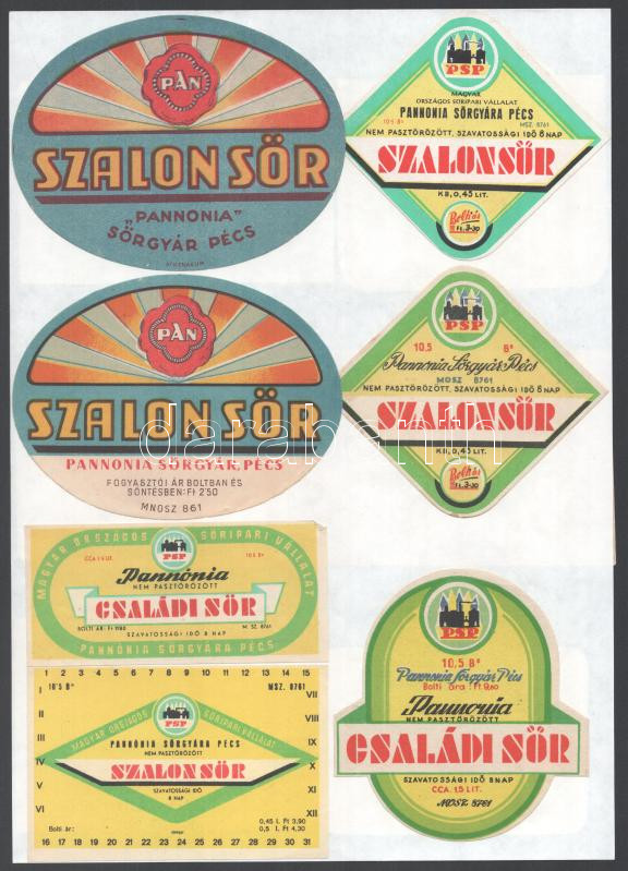 Leírás: Szalon Sör, Barna Sör, Pannonia Családi Sör, stb. sörcímkék, 13 db