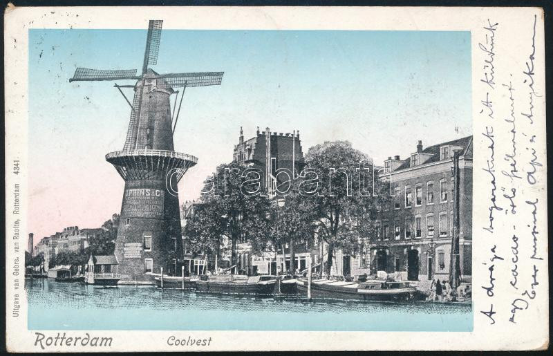 Leírás: 1903 Kézdi-Kovács László festőművész, műkritikus autográf humoros sorai, családjának Rotterdamból küldött, szélmalmot ábrázoló képeslapon.
