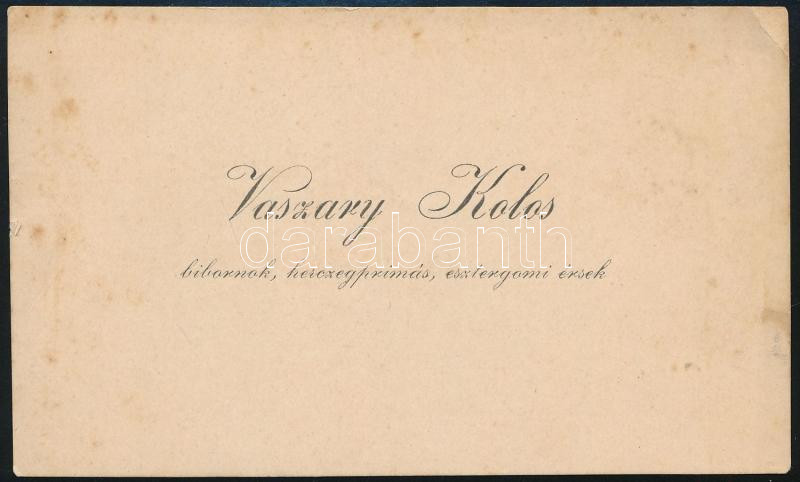 Leírás: cca 1900 Vaszary Kolos (1832-1915) bíboros, esztergomi érsek saját kézzel írt köszönő sorai és autográf aláírása saját névjegykártyáján