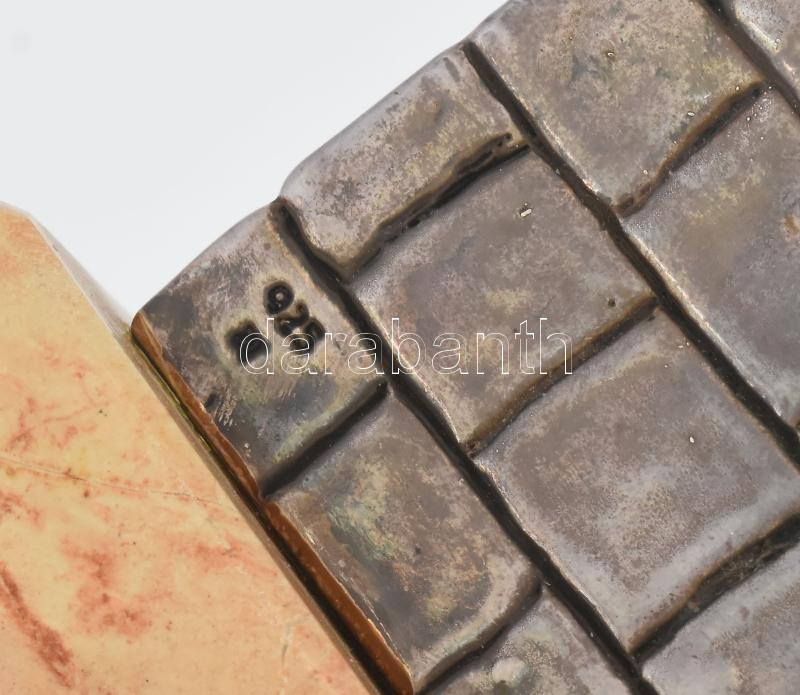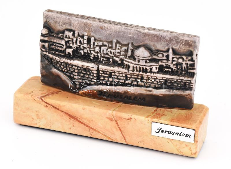 Leírás: Jerusalem városképét ábrázoló ezüst (Ag) lemezzel bevont asztaldísz. Jelzett, 13x8 cm