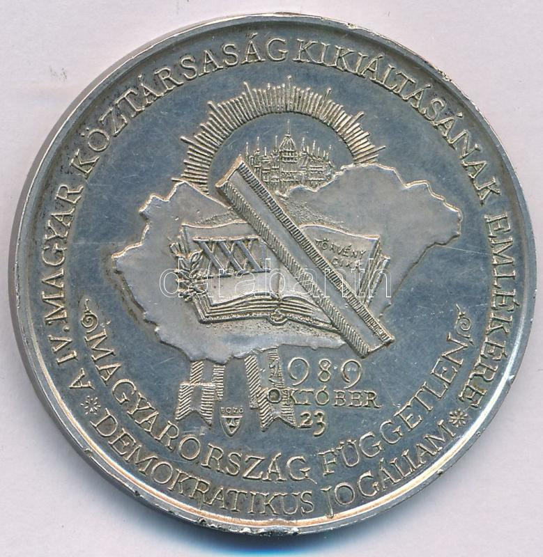 Bozó Gyula (1913-) / Szabó Géza (1939-) 1989. "A IV. Magyar Köztársaság kikiáltásának emlékére / Magyarország független demokratikus jogállam" Ag emlékérem (35,67/0.835/42,5mm) T:XF (eredetileg PP) több ph.