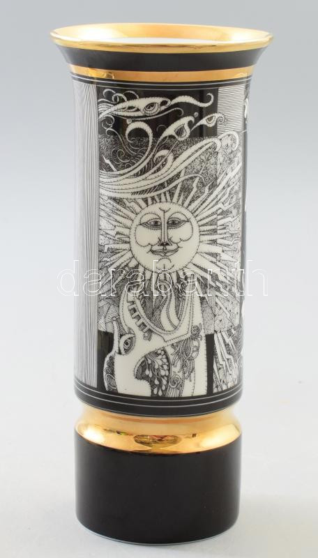 Leírás: Hollóházi Szász Endre által tervezett mintával díszített porcelán váza. Matricás, jelzett, hibátlan 20 cm