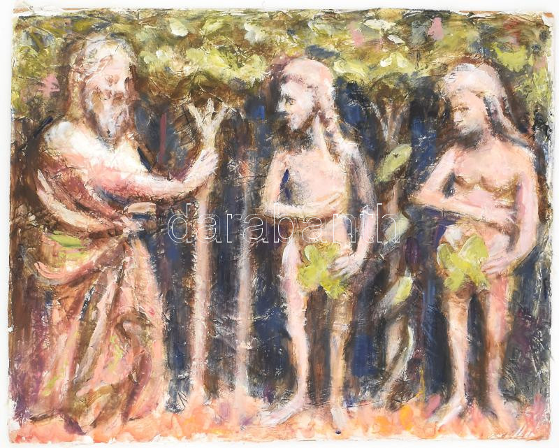 Leírás: Monica Vincent Hunter (-): Jelenet aktokkal. Olaj, papír,m farostra kasírozva. Jelzés nélkül. Szélein kissé sérült. 40,5x50,5 cm