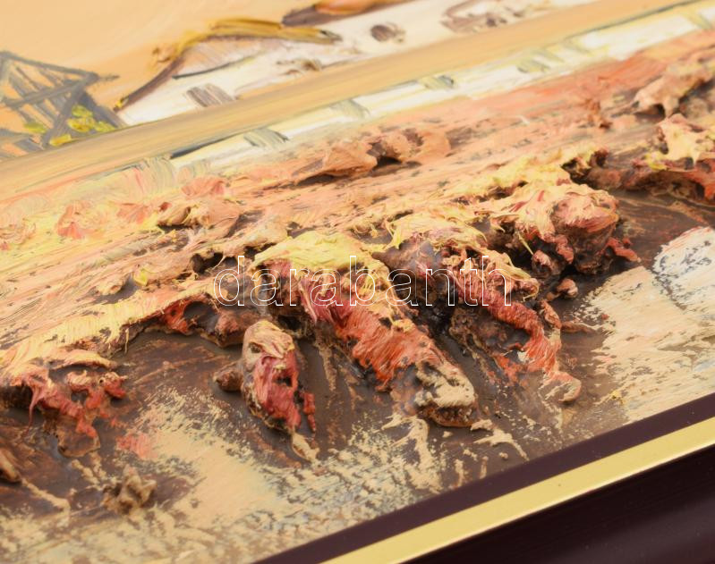 Leírás: Tóth Rozália (1946-2015): Őszi bíboralkony. Olaj, vegyes technika, farost, jelzett, 20x40cm. Dekoratív fakeretben.