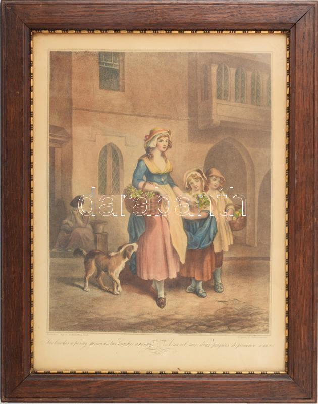 Wheatley, Francis (1747-1801) festménye után: Kanlakin eladó... (Two bunches a penny primroses...). Cries of London. Kézzel szÃnezett heliogravűr, papÃr, jelzett a metszeten. 40x30 cm. DekoratÃv, üvegezett fakeretben.