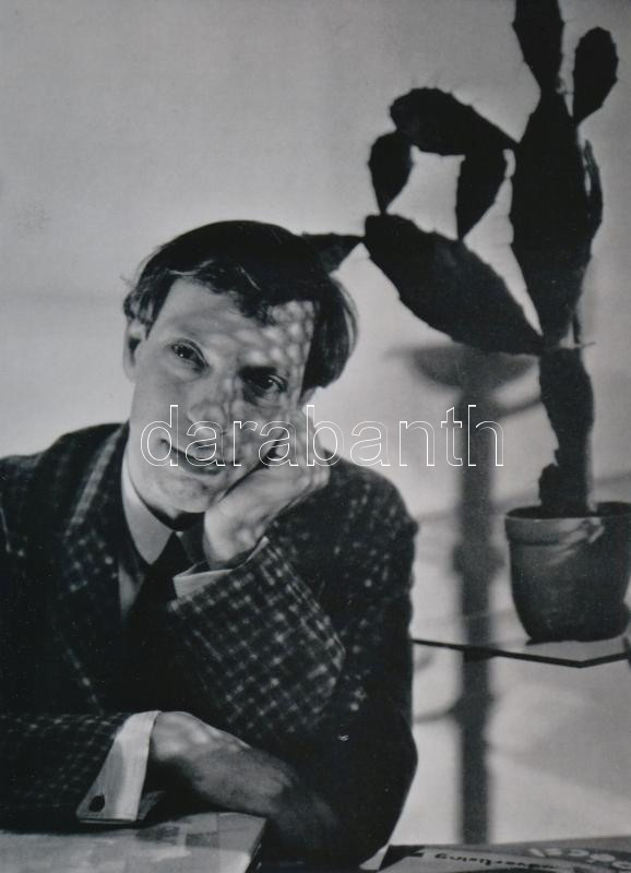 cca 1930 Pécsi József (1889-1956) budapesti fényképész és fotóművész önarcképe kaktusszal, 1 db modern nagyítás a néhai FOTÓ újság (1954-1989) archívumából, jelzés nélkül, 21x15 cm
