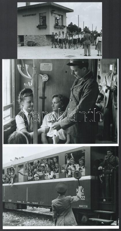 cca 1962 Budapest, az úttörővasút, Kotnyek Antal (1921-1990) budapesti fotóriporter felvételei, 3 db modern nagyítás, jelzés nélkül, 15x21 cm és 10x15 cm