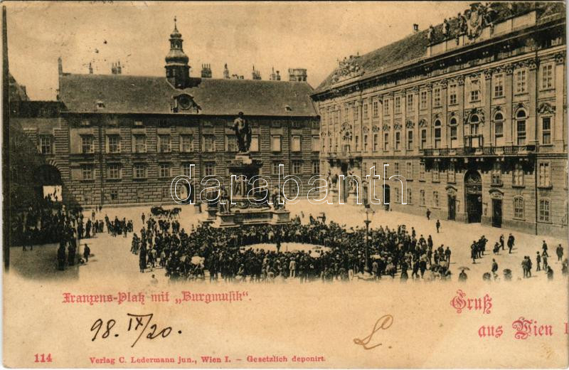 Leírás: 1898 (Vorläufer) Wien, Vienna, Bécs I. Franzens Platz mit Burgmusik (wet corner)