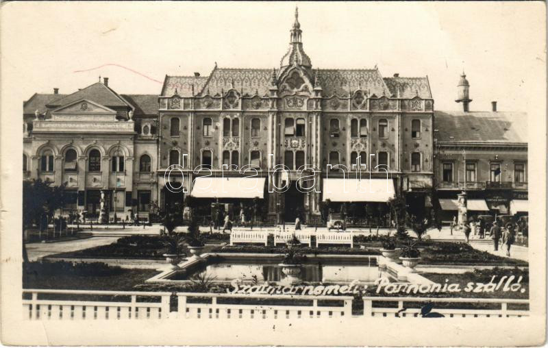 Leírás: 1940 Szatmárnémeti, Satu Mare; Pannonia szálló, Szatmár Vármegyei takarékpénztár rt., Fortuna buffet üzlete / hotel, shops, savings bank. photo + "1940 Szatmárnémeti visszatért" So. Stpl
