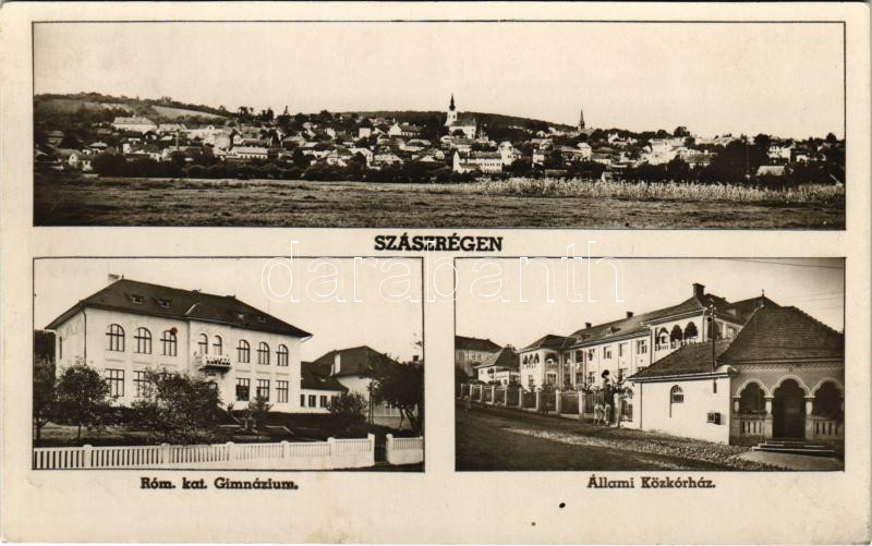 1943 Szászrégen, Reghin; látkép, Római katolikus gimnázium, Állami köz... https://www.darabanth.com/hu/468-Gyorsarveres/468.0/Kepeslapok/Erdely~2000006/1943-Szaszregen-Reghin-latkep-Romai-katolikus-gimnazium-Allami-kozkorhaz-general-view-~II3164070