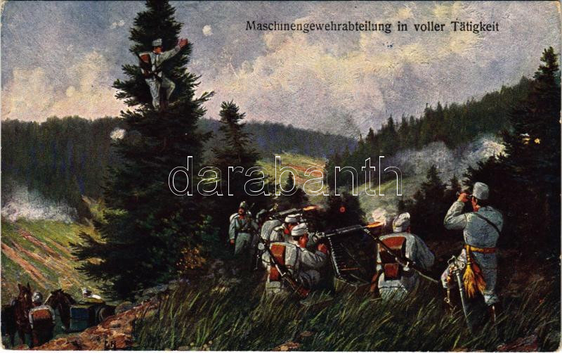 Leírás: Maschinengewehrabteilung in voller Tätigkeit / WWI K.u.K. (Austro-Hungarian) military art postcard, machine gun (EK)