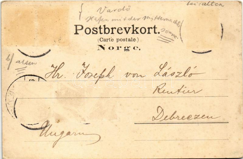1900 Vardo, Havnen med midnatsol / harbor with midnight sun (fl) https://www.darabanth.com/hu/468-Gyorsarveres/468.0/Kepeslapok/Norvegia~2000042/1900-Vardo-Havnen-med-midnatsol-harbor-with-midnight-sun-fl~II3162004