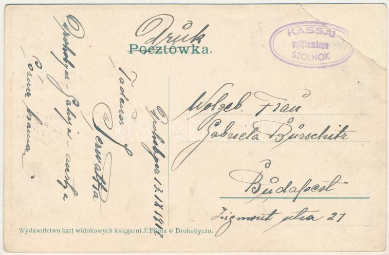 Leírás: 1912 Drohobych, Drohobycz, Drohobics; Szpital Izraelicki / Jewish hospital, Judaica. J. Pilpla (wet damage)