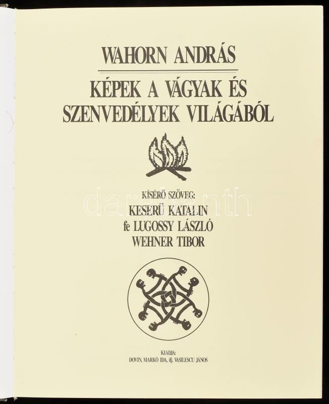 Wahorn András: Képek a vágyak és szenvedélyek világából. Kísérő szöveg: Keserű Katalin, fe Lugossy László, Wehner Tibor. Bp., 1991, Dovin, Markó Ida, ifj. Vasilescu János. 202 p. Képekkel gazdagon illusztrálva. Magyar és angol nyelven. Kiadói kartonált papírkötés, kiadói karton dísztokban.