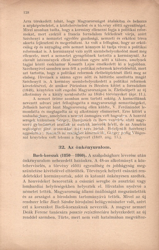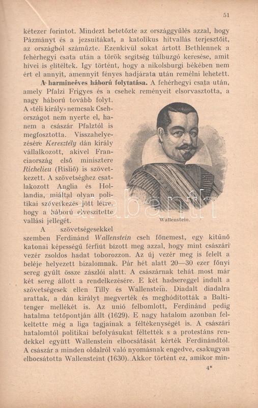 Csóka Lajos: Magyarország történelme a mohácsi vésztől napjainkig, tekintettel a világtörténelmi kapcsolatokra. A katolikus polgári fiúiskolák IV. osztálya számára. Budapest, 1931. Szent István-Társulat (Stephaneum ny.) 157 + [1] p. Csóka Lajos (1904-1980) bencés szerzetes, pannonhalmi levéltáros, történész. Oldalszámozáson belül gazdag szövegközti illusztrációs anyaggal kísért polgári iskolai történelemkönyve enyhén katolikus szemléletű, ám a katolikus szempont nem akadályozza meg Bocskay István, Bethlen Gábor, sőt később Bismarck kancellár történelmi szerepének méltató elismerésében. A katolikus történetírás szokásától eltérően a magyar érdekek ellen fellépő Habsburgok némelyike komoly kritikában részesül (I. Lipót uralma), és jóllehet Mária Terézia erős méltatást kap, a katolikus klérus jogai ellen fellépő II. József politikája kiegyensúlyozott kritikában részesül, az 1848 utáni idők neoabszolutizmusát pedig határozottan elítéli a könyv. A mohácsi vésztől a trianoni békediktátum utáni időkig terjedő történelmi áttekintés szemlélete a katolikus és a nemzeti szempontokat elegyíti. Fűzve, illusztrált, enyhén sérült, enyhén foltos kiadói borítóban. Jó példány.
