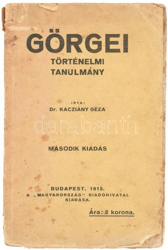 Dr. Kacziány Géza: Görgei. Történelmi tanulmány. Bp., 1915, Magyarorsz... https://www.darabanth.com/hu/468-Gyorsarveres/468.0/Konyvek/Konyvek-Tortenelem~1500026/Dr-Kacziany-Geza-Gorgei-Tortenelmi-tanulmany-Bp-1915-Magyarorszag-Kiadohivatal-Kiadoi~II3166944