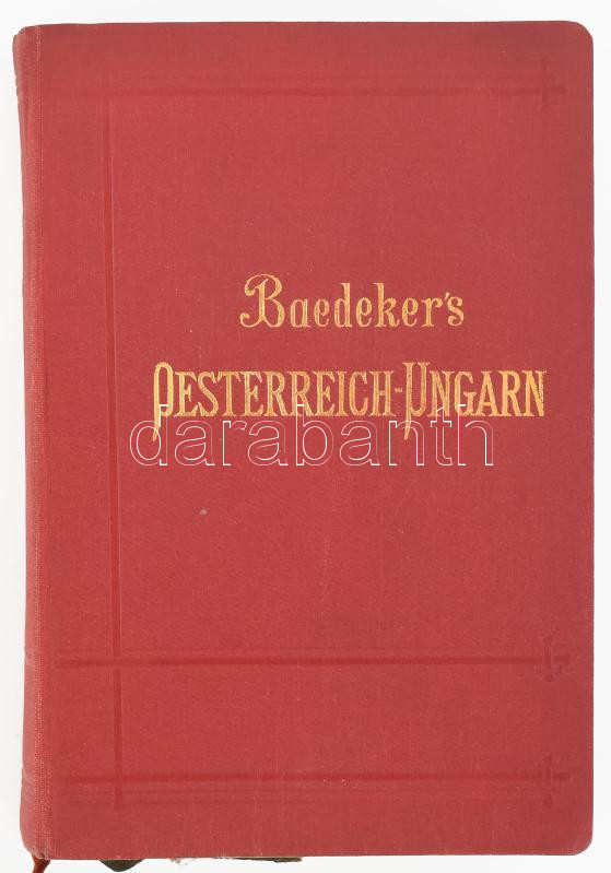 Karl Baedeker: Österreich-Ungarn nebst Bosnien und der Herzegowina, Cetinje, Belgrad, Bukarest. Handbuch für Reisende von - -. Leipzig, 1907, Karl Baedeker. Német nyelven. Térképekkel rendkívül gazdagon illusztrált, közte kihajtható Osztrák-Magyar Monarchia térképpel, de benne város térképek (Bécs, Pozsony, Prága, Budapest, Brassó...stb), valamint Tátra, és Adria térkép is. Kiadói aranyozott egészvászon-kötés, foltos lapokkal.
