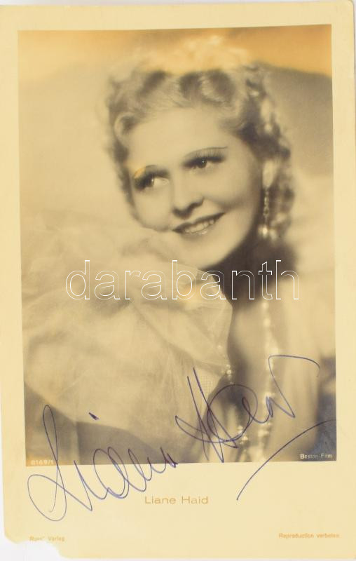 Leírás: Liane Haid (1895-2000) osztrák színésznő aláírt fotólapja
