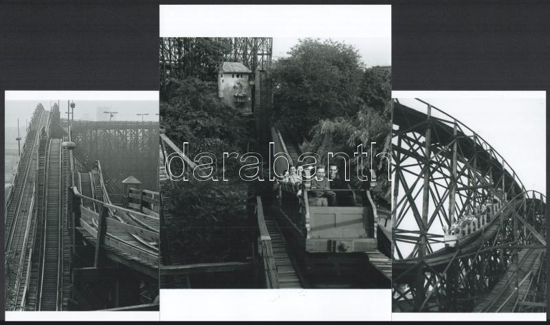 cca 1965 Kotnyek Antal (1921-1990) budapesti fotóriporter felvételei, a budapesti vidámpark régi hullámvasútjáról, 3 db modern nagyítás, jelzés nélkül, 21x15 cm és 15x10 cm