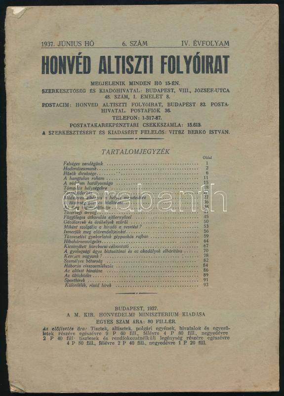 1937 Honvéd Altiszti Folyóirat IV. évfolyam 6. szám https://www.darabanth.com/hu/468-Gyorsarveres/468.0/Mutargy-papirregiseg-egyeb/Militaria~1500008/1937-Honved-Altiszti-Folyoirat-IV-evfolyam-6-szam~II3166850