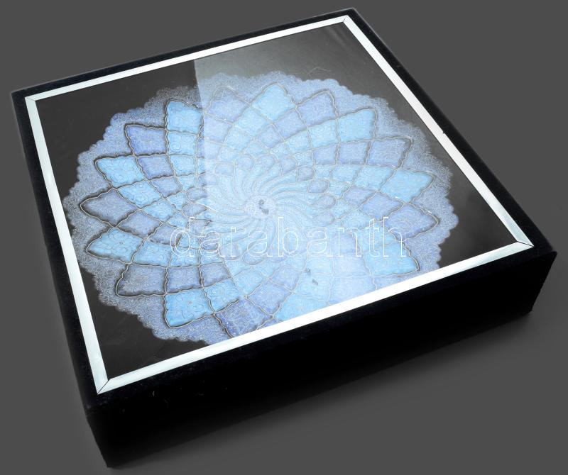 Leírás: Dísztál. Irán, XX. sz. kézzel festett zománcozott réz, jelzett, d: 40 cm Díszodobozban
