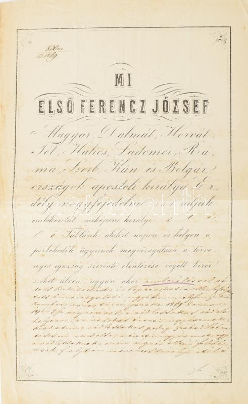 Leírás: 1869 Emberölés miatti táblabírósági ítélet
