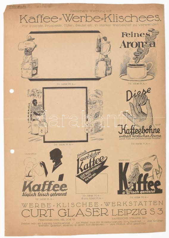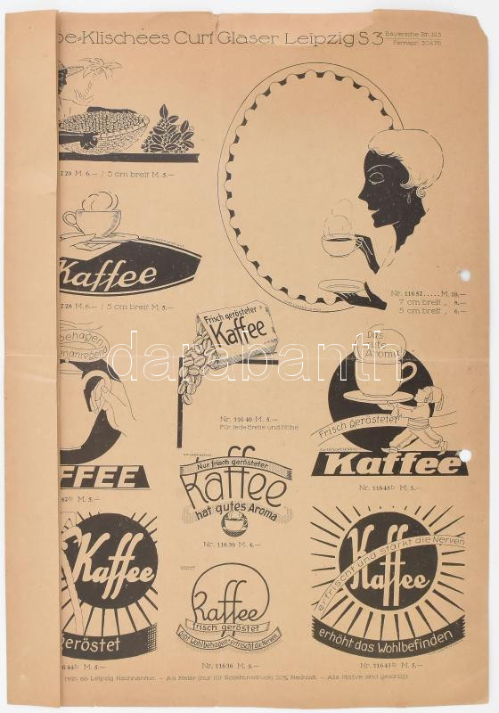 cca 1910-1930 Kafee-Werbe-Klisches, gazdag képanyaggal illusztrált, ki... https://www.darabanth.com/hu/468-Gyorsarveres/468.0/Mutargy-papirregiseg-egyeb/Tortenelmi-dokumentumok-keziratok-erdekessegek~1000022/cca-1910-1930-Kafee-Werbe-Klisches-gazdag-kepanyaggal-illusztralt-kis-lapszeli-lyukakkal-2~II3168173