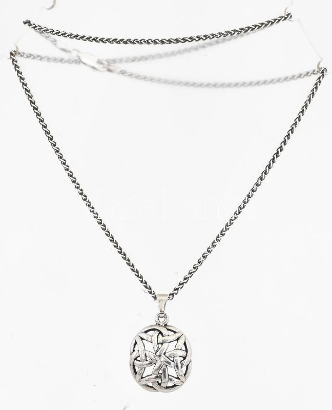 Leírás: Ezüst(Ag) fonott nyaklánc, áttört medállal, jelzett, h: 46 cm, 2,6×1,9 cm, nettó: 8,8 g