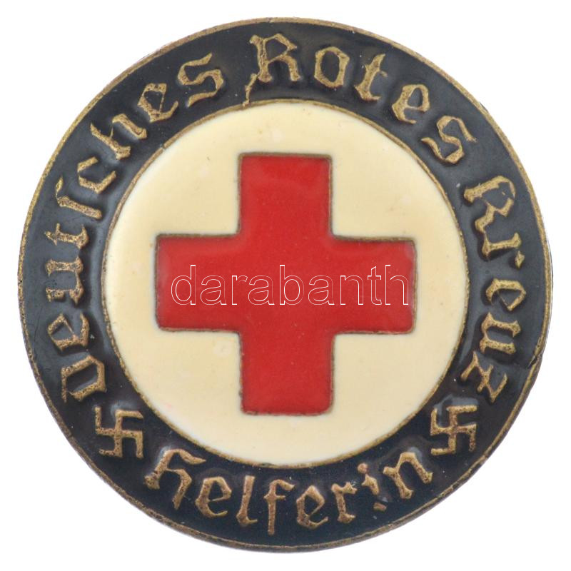 German Third Reich ~1940. "Deutsches Rotes Kreuz - Helferin" enamelled, "KVA"(?) maker's mark badge (30mm) C:XF