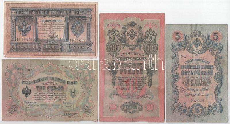Leírás: Orosz Birodalom 1912-1917. (1898) 1R Szign.: Shipov + 1909-1912. (1905) 3R Szign.: Konshin + 1912-1917. (1909) 5R Szign.: Shipov + 1912-1917. (1909) 10R Szign.: Shipov T:F foltos Russian Empire 1912-1917. (1898) 1 Ruble Sign.: Shipov + 1909-1912. (1905) 3R Szign.: Konshin + 1912-1917. (1909) 5 Rubles Sign.: Shipov + 1912-1917. (1909) 10 Rubles Sign.: Shipov C:F spotted