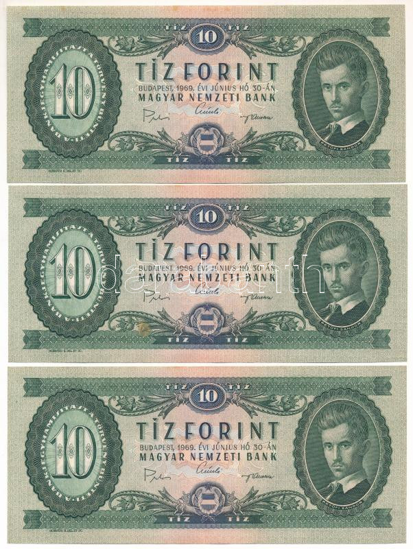 Leírás: 1969. 10Ft (3x) sorszámkövetők "A 025 054179 - A 025 054181" T:UNC,AU egyiken folt Adamo F7
