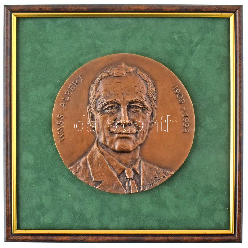 Leírás: Domonkos Béla (1934-2020) DN "Wass Albert 1908-1998" egyoldalas, öntött bronz plakett keretben (160mm, keret: 270x269mm) T:AU