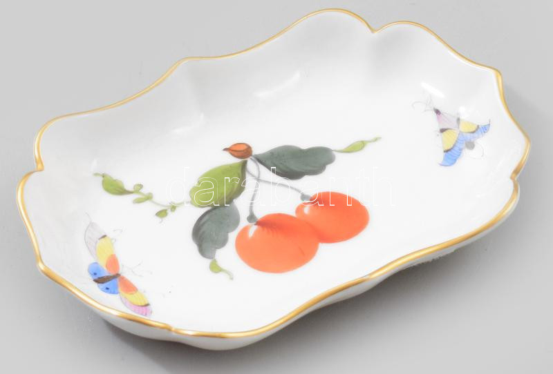Leírás: Herendi Fruits & Flowers mintás ékszeres tálka, jelzett, hibátlan, 11x8 cm