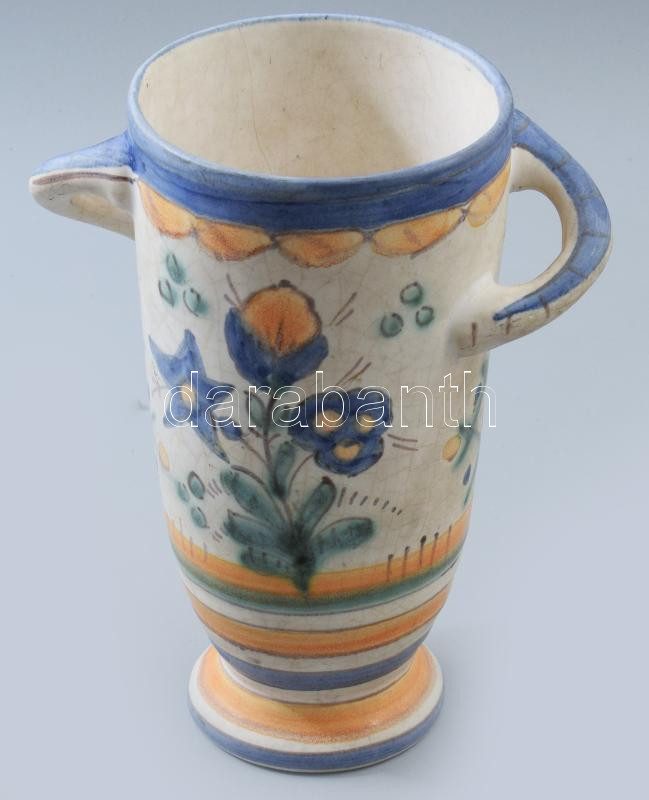 Virágmintás kétfüles váza. Jelzett, repedt, m: 19,5 cm https://www.darabanth.com/hu/468-Gyorsarveres/468.0/Porcelan-keramia-uveg/Retro-keramia-gyujtemeny~1000024/Viragmintas-ketfules-vaza-Jelzett-repedt-m-19-5-cm~II3160490