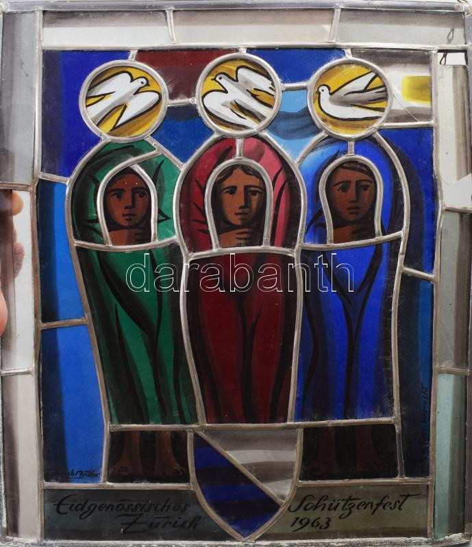 1963 Vallásos témájú ólomkép, jelzett, sérült, 37x32 cm https://www.darabanth.com/hu/468-Gyorsarveres/468.0/Porcelan-keramia-uveg/Uvegtargyak~1000008/1963-Vallasos-temaju-olomkep-jelzett-serult-37x32-cm~II3167240