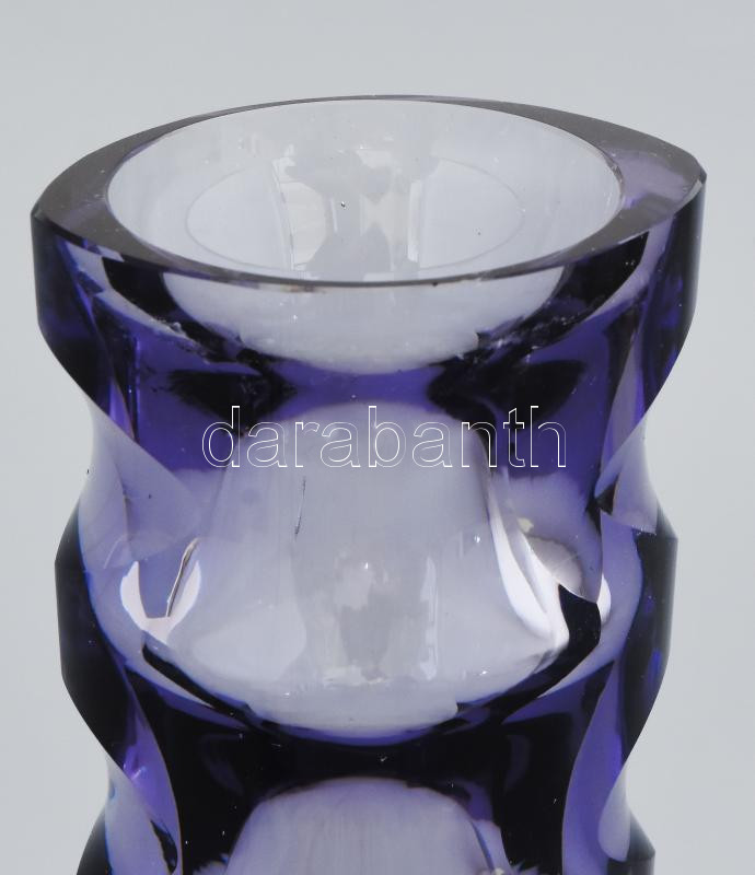 Leírás: Cseh lilán színezett üvegváza, cca 1960 designer: Oldrich Lipsky. Jelzés nélkül, kis kopással, m: 20 cm