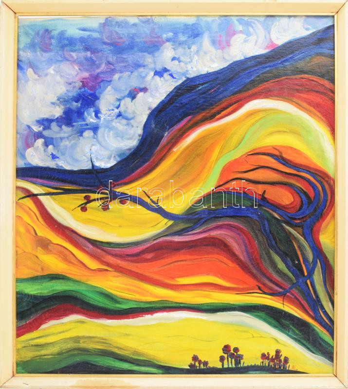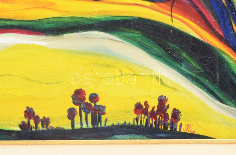 Leírás: Klie jelzéssel: Színes táj. Olaj, vászon. 59,5x50 cm. Fakeretben.