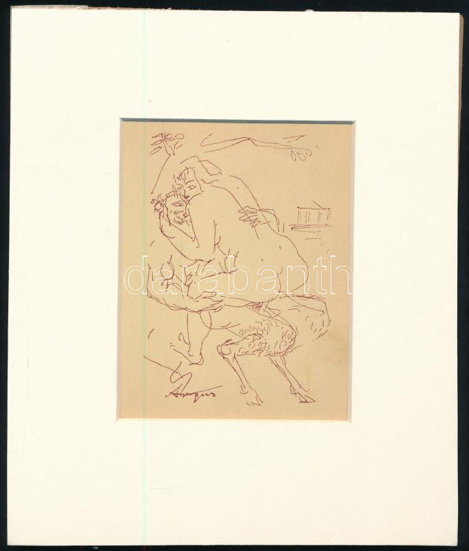 Leírás: Olvashatatlan jelzéssel: Erotika, nyomat, paszpartuban, kissé foltos, 10,5×8,5 cm