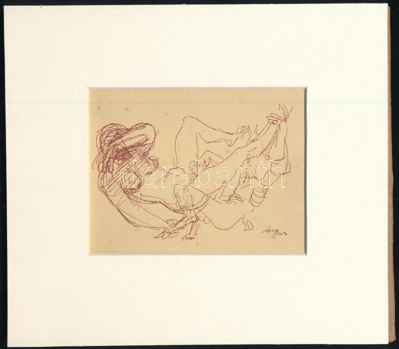 Leírás: Olvashatatlan jelzéssel: Erotika, nyomat, paszpartuban, kissé foltos, 8×10,5 cm