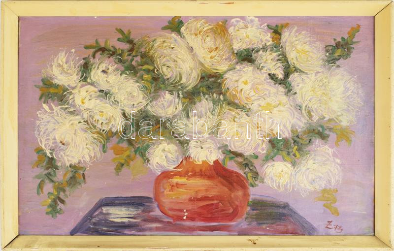 Z 73 jelzéssel: Virág csendélet. Olaj, fa keretben, 40x60 cm https://www.darabanth.com/hu/469-Gyorsarveres/469.0/Festmenyek-es-grafikak/Festmenyek-es-grafikak-jelzessel-jelzes-nelkul~500002/Z-73-jelzessel-Virag-csendelet-Olaj-fa-keretben-40x60-cm~II3172175