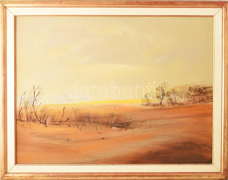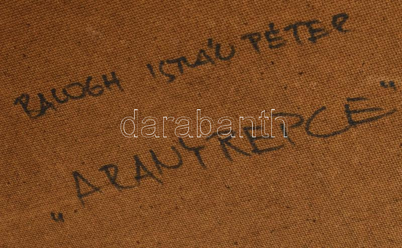 Balogh István Péter (1950-): Aranyrepce. Olaj, farost, jelezve jobbra lent. Hátoldalán Képcsarnok Vállalat címkével és autográf felirattal. Dekoratív fakeretben, 60x80 cm