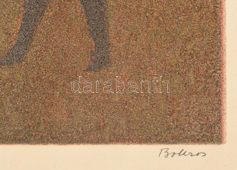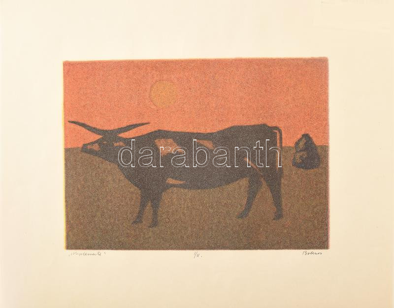 Leírás: Bokros László (1928-2017): "Naplemente". Szitanyomat, glitter (?), papír, jelzett, számozott (I/II). 25x35 cm