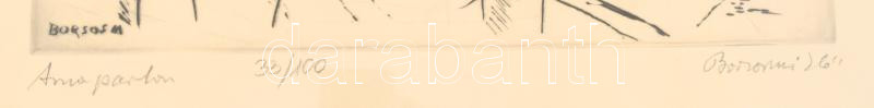 Leírás: Borsos Miklós (1906-1990): Arno parton. Rézkarc, papír, jelzett, számozott (33/100), üvegezett fakeretben, 20×29 cm