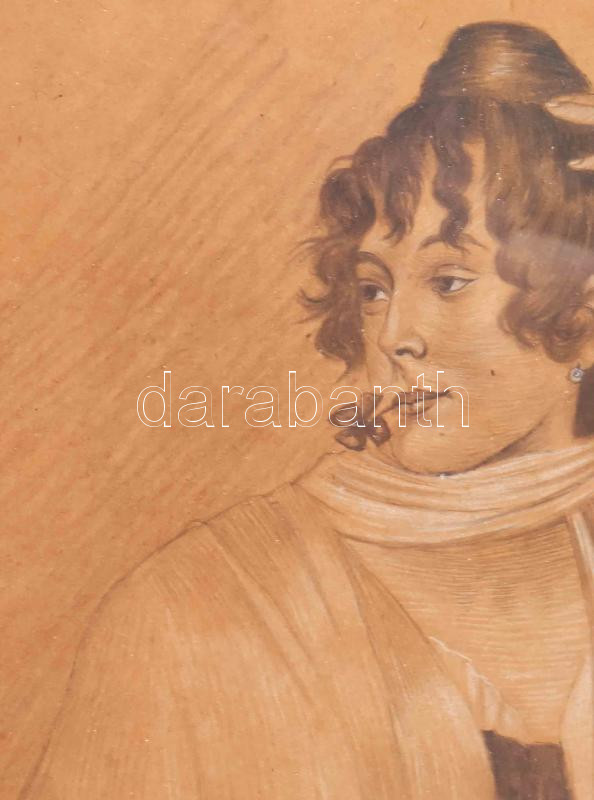 Leírás: Faragó Géza (1877-1928): Párizsi dáma. Ceruza, fedőfehér, papír, jelzett, üvegezett fakeretben, 39,5×29,5 cm