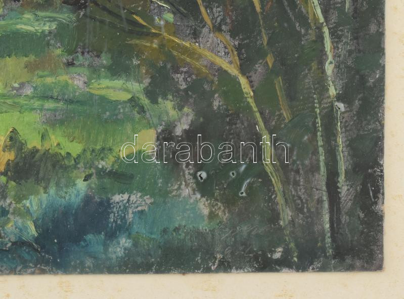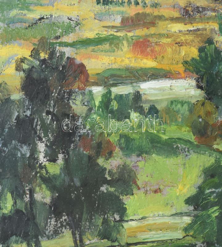Incze István (1905-1978): Maros Marosvécsnél (Erdély), 1974. Olaj, karton, jelezve jobbra lent, üvegezett fakeretben, 34,5×49 cm / oil on board, signed lower right, framed