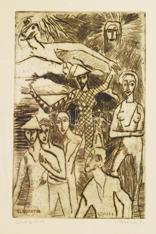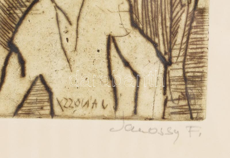 Jánossy Ferenc (1926-1983): Elhagyqatva. Színezett rézkarc, papír, jel... https://www.darabanth.com/hu/469-Gyorsarveres/469.0/Festmenyek-es-grafikak/Festmenyek-es-grafikak~500001/Janossy-Ferenc-1926-1983-Elhagyqatva-Szinezett-rezkarc-papir-jelzett-uvegezett-fa-keretb~II3172165