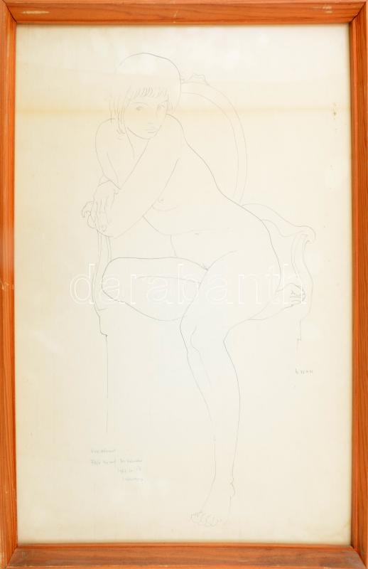 László Gyula (1910-1998): Női akt. Tus, papír, jelzett, László Gyula autográf ajándékozási soraival, kisebb elszíneződéssel, üvegezett keretben, 43×30 cm