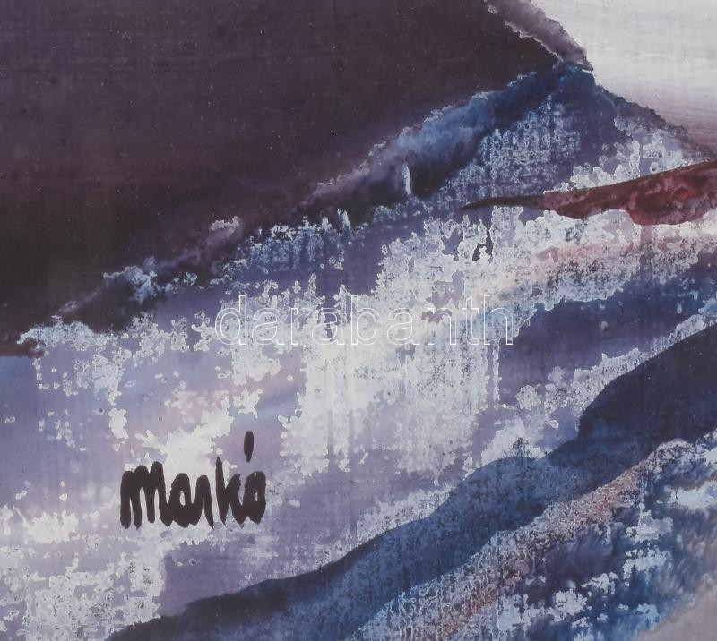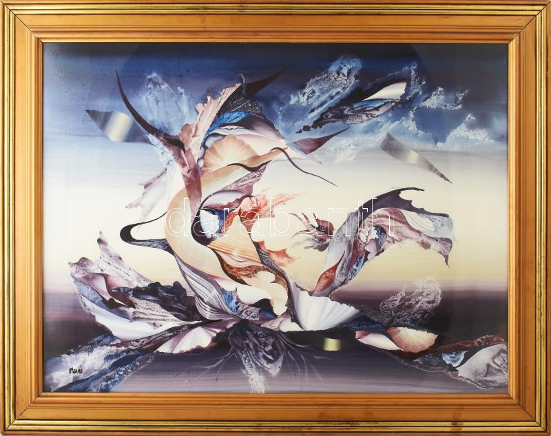 Leírás: Markó Erzsébet (1947-): Szökőkút. Olaj, farost, jelezve balra lent, hátoldalán Képcsarnok Vállalat címkéivel. Dekoratív, üvegezett fakeretben, 60×80 cm