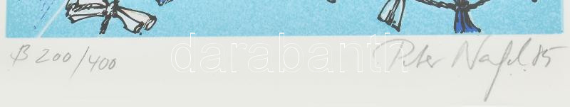 Leírás: Peter Nagel (194-): Sárkány (Drache über der Binnenalster). Szitanyomat, papír. Jelzett. Számozott: 200/400. 19x17 mm. Üvegezett fakeretben.
